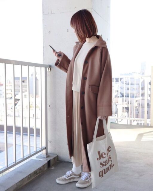 配色テクニック1|プリーツスカートとコートを同系色で合わせる