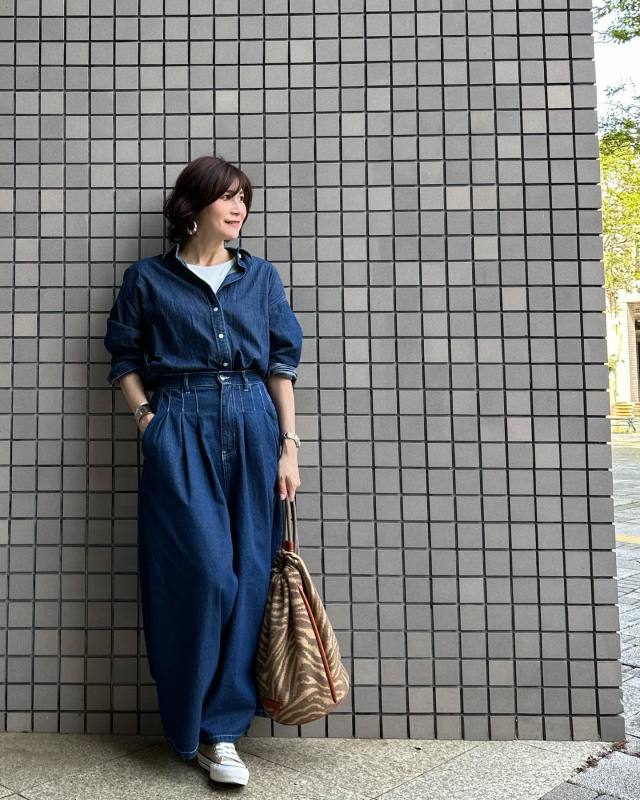 【50代×秋のデニムパンツコーデ】あえての上下デニムが今っぽい