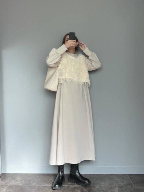 ベストやジレはファー素材がトレンド。通年あるアイテムだからこそ、季節感のある素材にするだけで一気に洗練度がアップします。