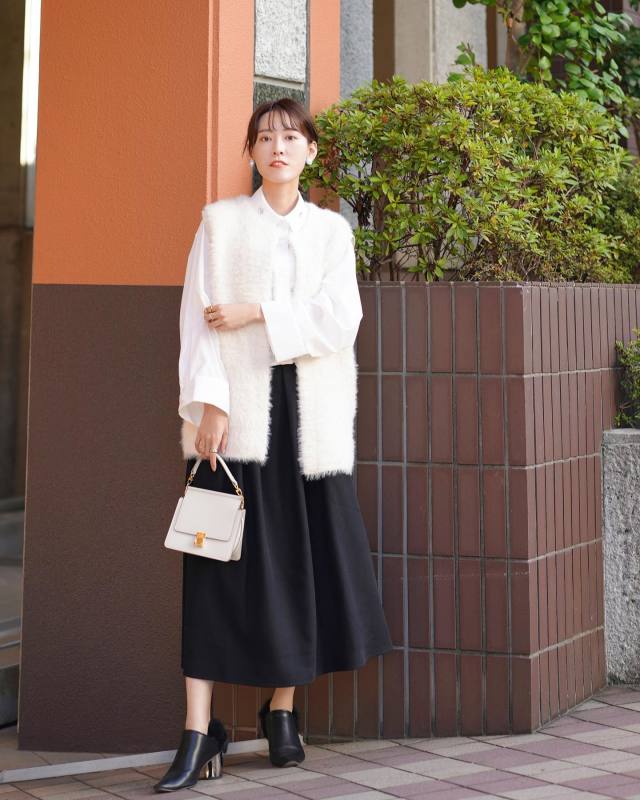 13. 【40代50代のもこもこベストコーデ15選】ファーベスト・ボアベスト・ダウンベスト着こなしのコツ