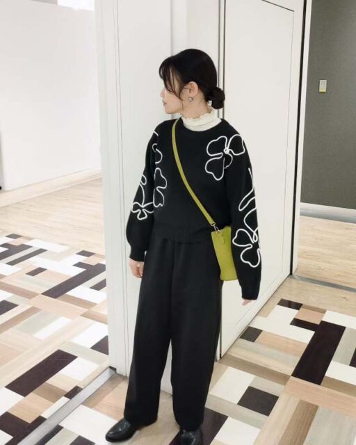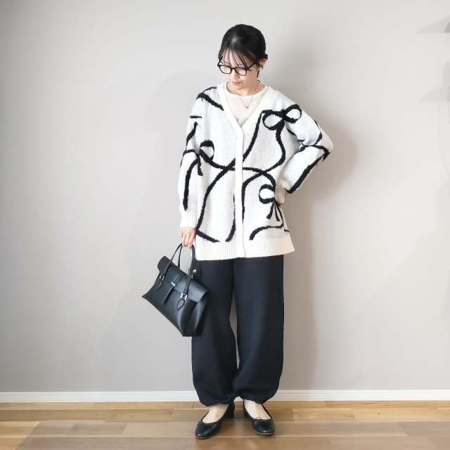 黒ズボンに合う服3|柄ニット・柄カーディガン