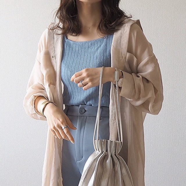 暑い時期の上着として、シアーカーディガンも同じく使えます。程よく風を通してくれるので、日焼け対策としても◎。