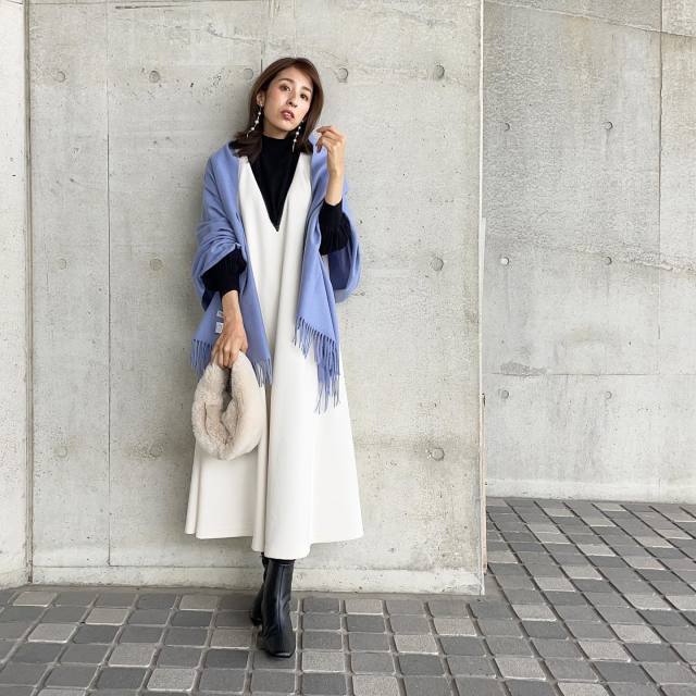 プラスワンであると便利なのがマフラー・ストールです。首に巻くのはもちろん、肩に掛ける・ひざ掛けにするなど、オールマイティに使えるのが魅力!