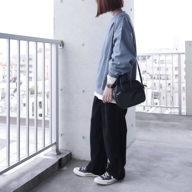 【ロンTの重ね着コーデ3】ニット・スウェットの下に着てチラ見せ