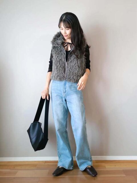 【ロンTの重ね着コーデ1】ニットベスト・ファーベストを羽織る