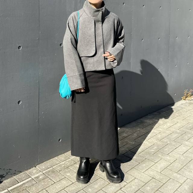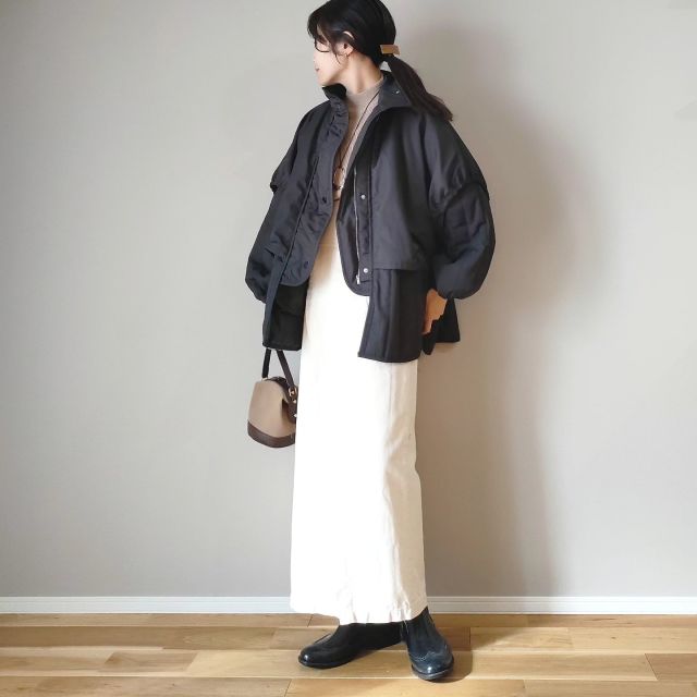 コンパクトな丈感ならジャケットやコートと種類を問わずロングスカートと相性がよく、コーデのバランスはピカイチ。下半身が長く見えるのでスタイルアップ効果も狙えますよ。