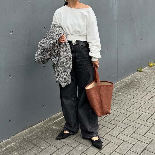 ※スナップで着用しているスウェードバッグのブランドは>>DROBE(ドローブ)