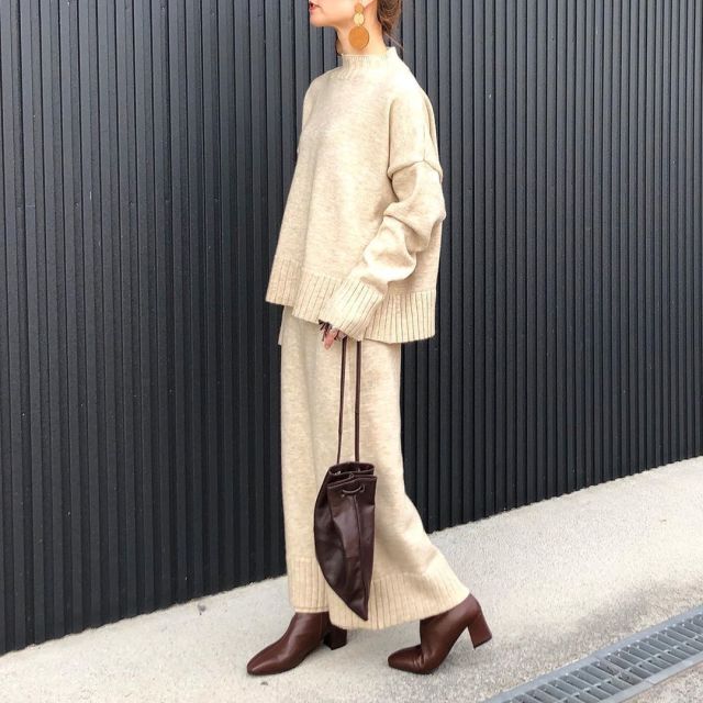 単品で着回せる「ニットのセットアップ」も冬旅行に便利です。上下別々で着こなせるのでコーデのアレンジが可能。荷物を最小限に抑えながら、変化のあるファッションが楽しめますよ。