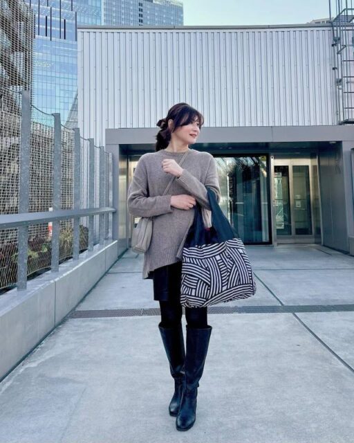ロングブーツ全般に似合うのが「ハーフパンツ」。加えてパンツとブーツを同色で揃えると下半身がまとまり、コーデがおしゃれ見え。厚手タイツを合わせれば防寒対策も万全です。