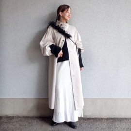 コートとはいえ丈感がコンパクトならパンツ・スカートのどちらにも合わせやすいですよ。使いやすさはバツグンです♪