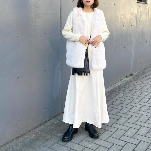 おしゃれさんから支持を集めているのが冬のホワイトコーデ×黒ブーツの着こなし。白のアウターやレイヤードスタイルにエッジが効いて鮮度アップ。加えて黒いバッグを合わせるとスタイリングがまとまり、オールホワイトコーデが大人っぽく落ち着きます。