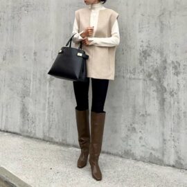 ちなみにムートンブーツ×スキニーパンツのコンビは時代遅れ感があるので、今シーズンは避けたほうが無難です。