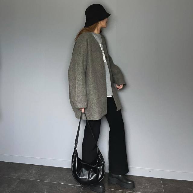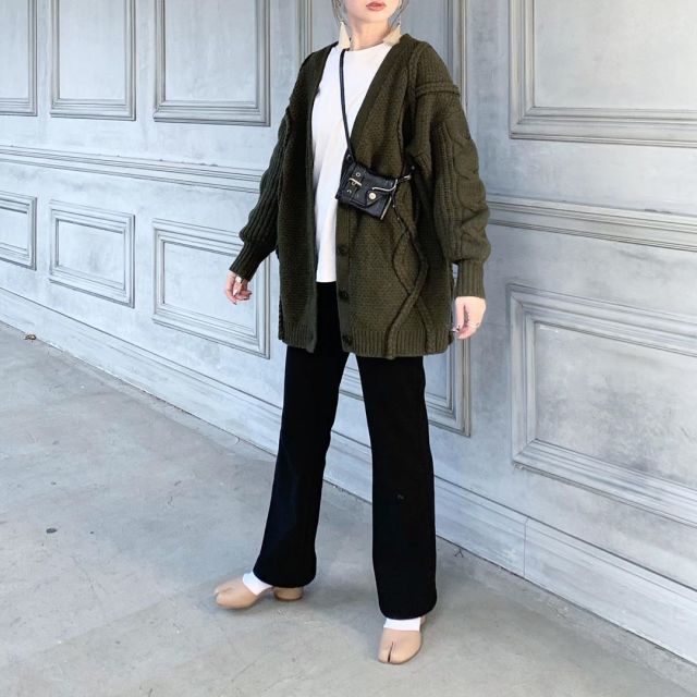 フレアパンツに合う服2|オーバーサイズのカーディガン