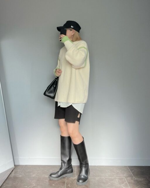 さらに今季は短丈ボトムやスカートだけでなくパンツをインして履くのも流行り。ふくらはぎに程よく余裕を持たせたシルエットを選ぶと◎です。