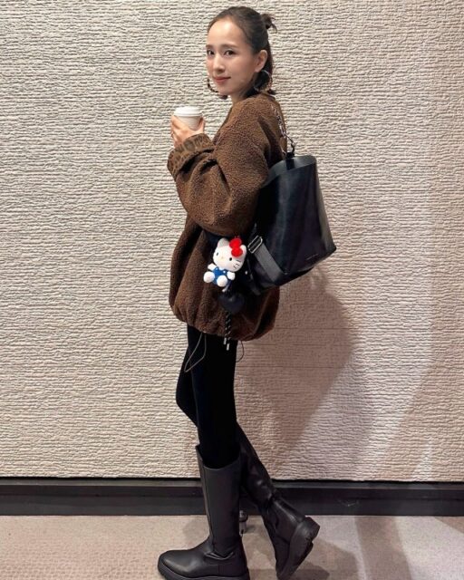 ボリュームのあるトップスはレギンスとの相性が抜群。スナップではたっぷりシルエットのブラウンプルオーバーを主役に、下半身は黒のレギンスとブーツですっきりと。失敗がない黄金バランスのコーデなのでぜひ試してみてください。