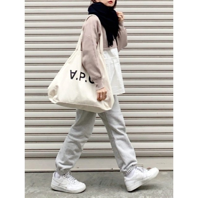 もし白×ブルーの配色が寒そうに見えたらブラウンや黒の小物をプラスすると◎。バッグや靴の色を暗くするとシーズンムードに馴染みますよ。