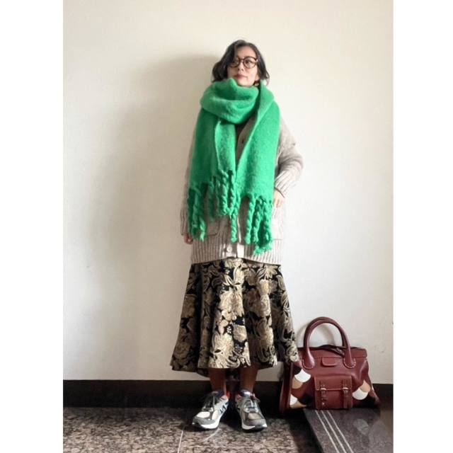 【50代×冬のスニーカーコーデ】ロングスカートを合わせる