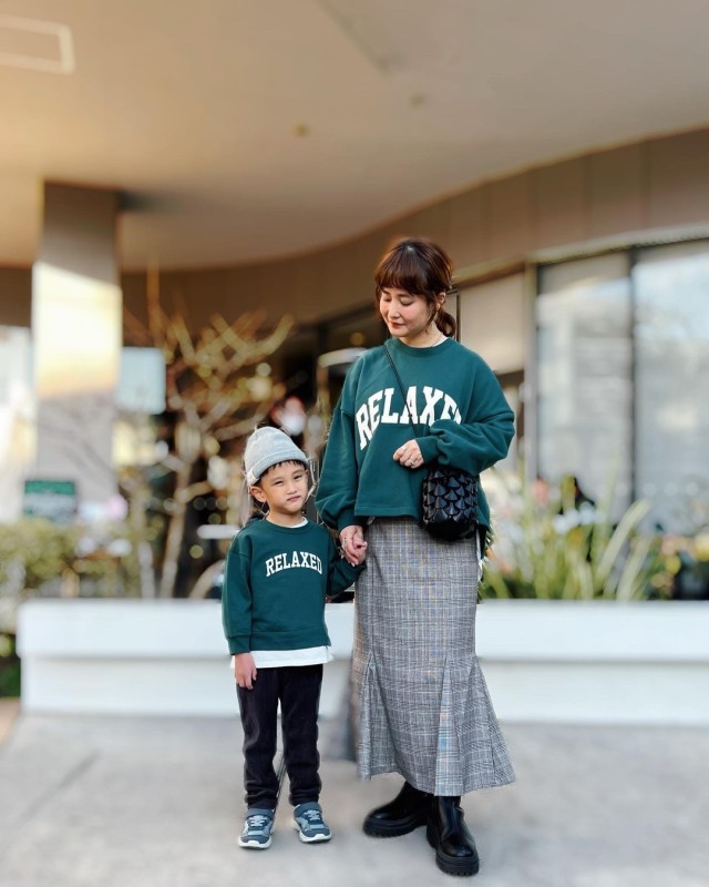 まずご紹介するのは、親子でお揃いのスウェットを着こなすリンクコーデ。スナップでは「ROPE’ PICNIC(ロペピクニック)」のお揃いデザインを着用しています。シーズンによる場合もありますが、こちらのブランドでは親子でおしゃれに着こなせる一着が見つかりますよ。