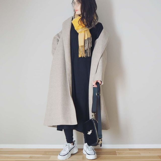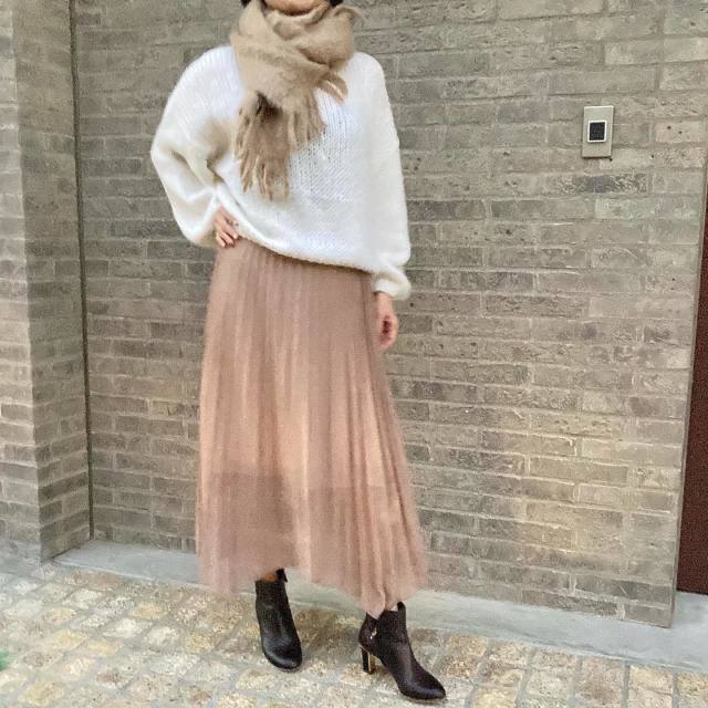 定番色のマフラーでイチ押しの色はライトベージュ。茶系は全般的に似合いますが、薄い色で取り入れることでイエベ春さんのお肌をより明るく見せてくれますよ♪