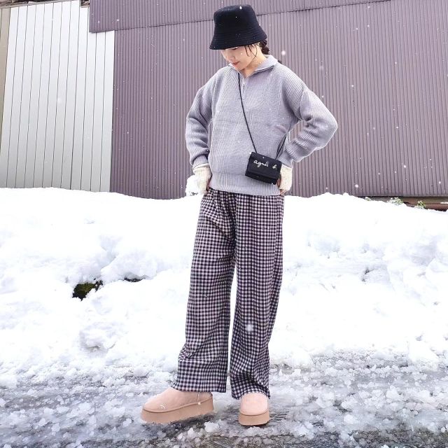 冬シーズンには「ショート丈のムートンブーツ」がお役立ち。ファスナーがないデザインだから、そのままスッと履けますよ。内側にもこもこのファーが施されているので寒い日のお出かけに最適です。