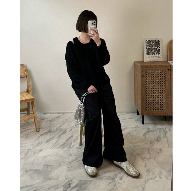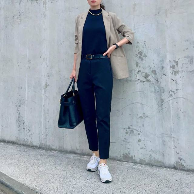 黒トップス×白スニーカーのコーデ