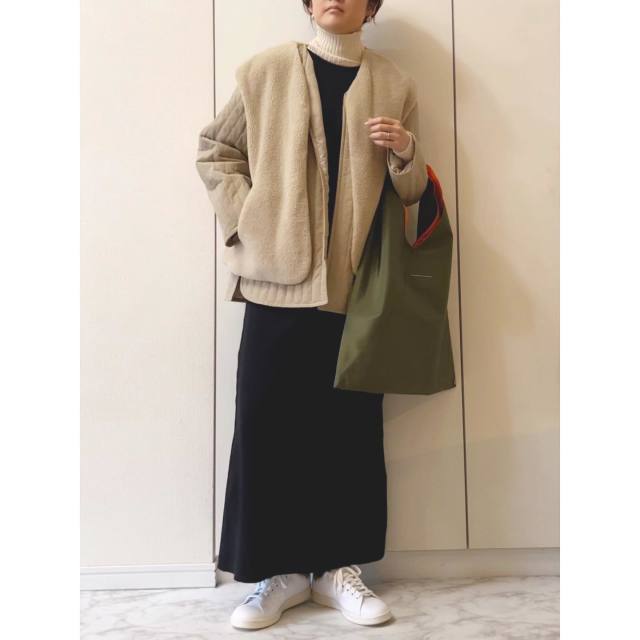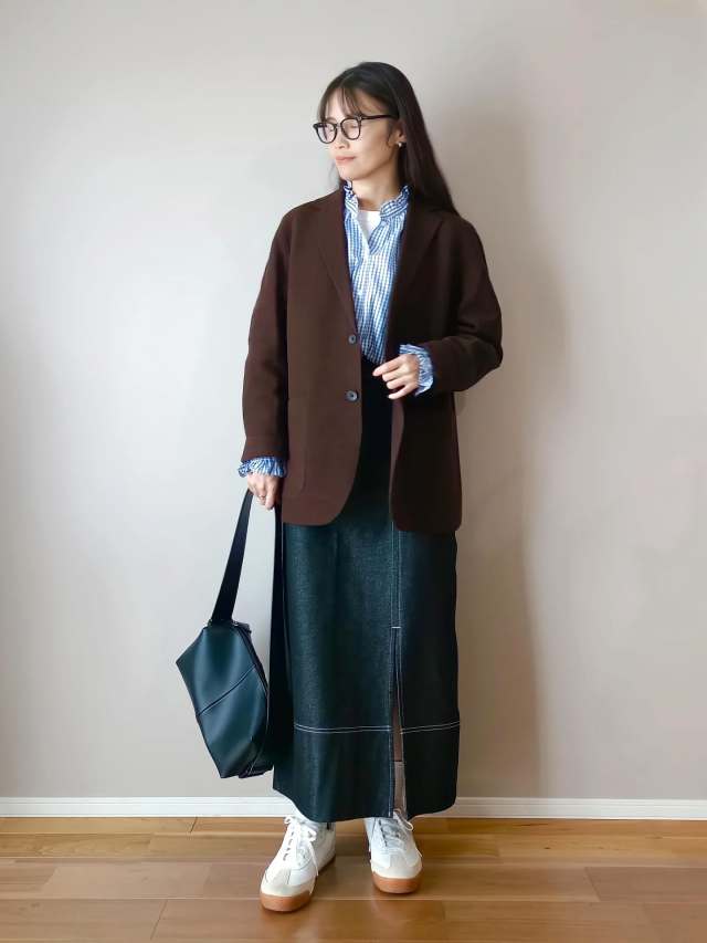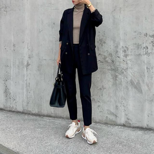 黒アウター×白スニーカーのコーデ
