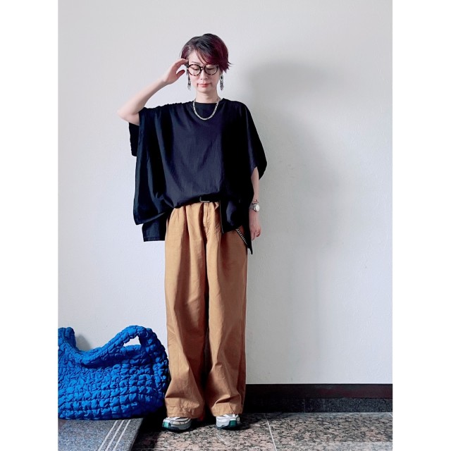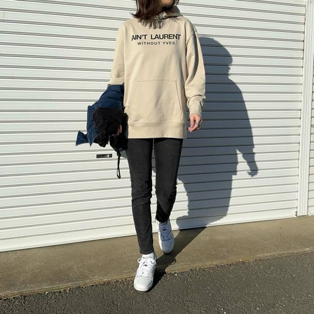 黒パンツ×白スニーカーのコーデ