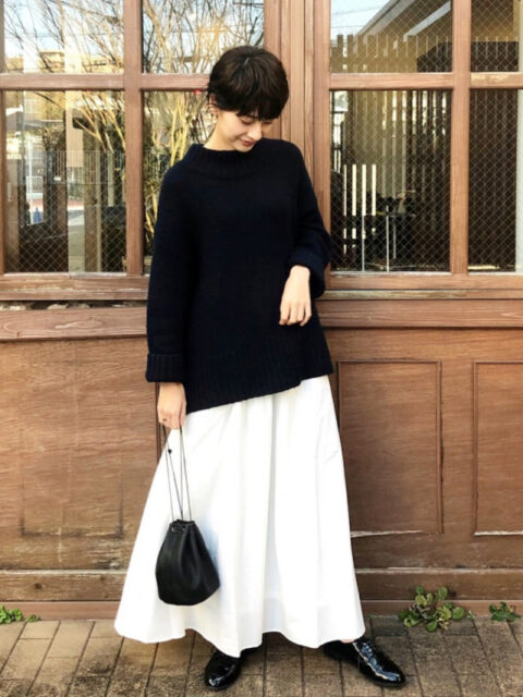 【2025年12月9日のコーデ】冬にあえての白スカートがカワイイ♪