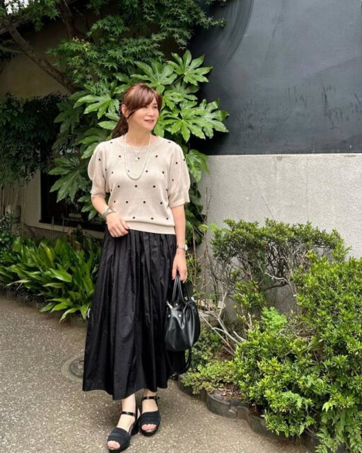 こちらは、シンプルなワンピースにテーラードジャケットを羽織ったコーデ。カーディガンの代わりにジャケットを使うことで、ワンピースの着こなしが少しモードに変化します。