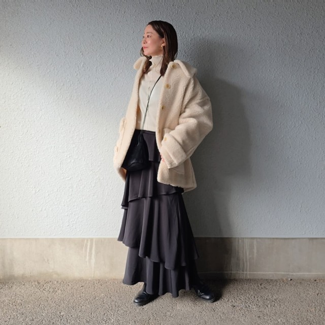 【2025年12月15日のコーデ】白アウターで冬コーデの顔映りをバツグンに♪