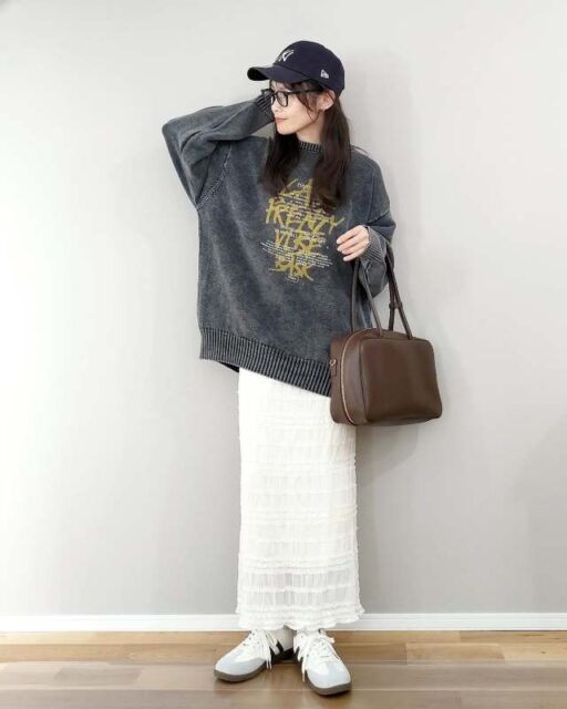 大きめニットにはどんなスカートが似合う?