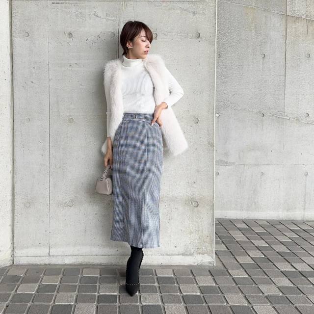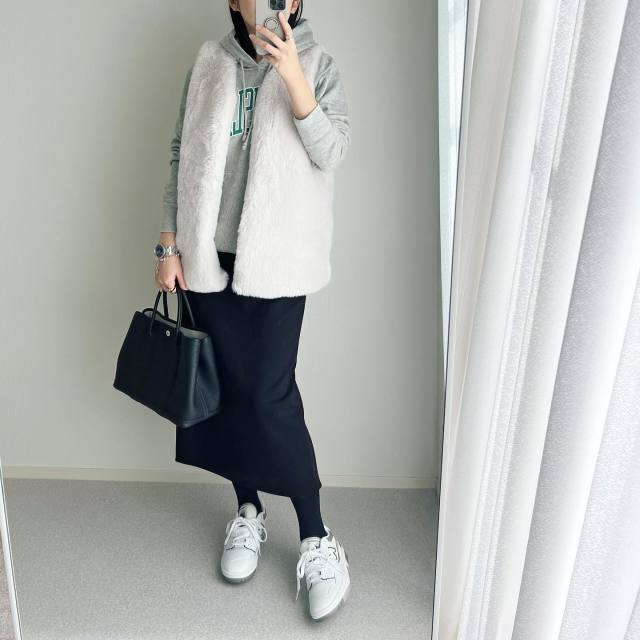 マタギっぽさが気になるベストも白で取り入れれば心配無用。シーズンアイテムなので年明けのセールが狙い目です!