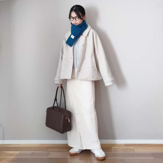 【冬の白スカートコーデ3】白っぽい色でまとめて鮮度アップ