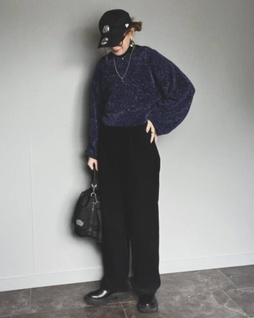 今回はおしゃれさんのスナップを参考に、ベロアトップスの今っぽい合わせ方をご紹介します。
