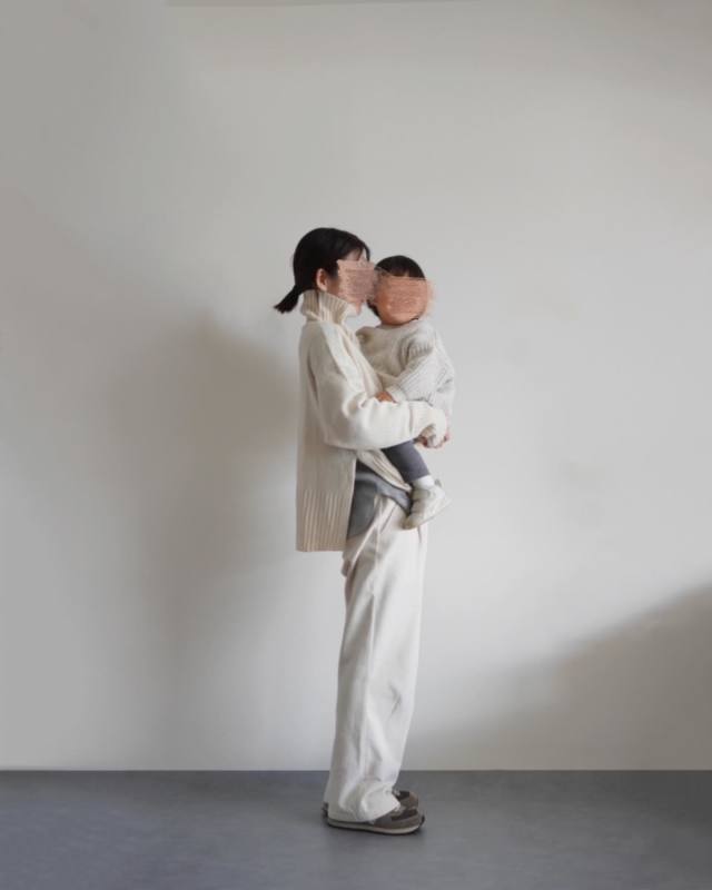 【子連れママのスニーカーコーデ5】スニーカー×きれいめパンツの冬コーデ