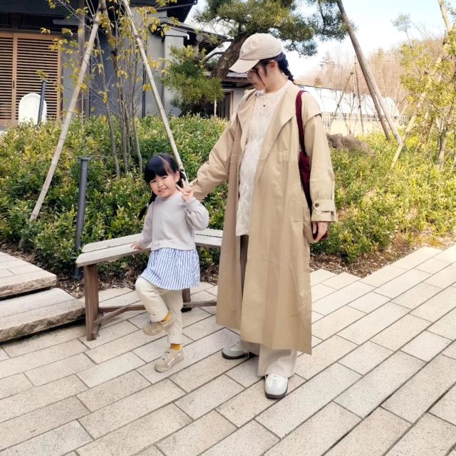 【子連れママのスニーカーコーデ1】スニーカー×ロングコートの冬コーデ