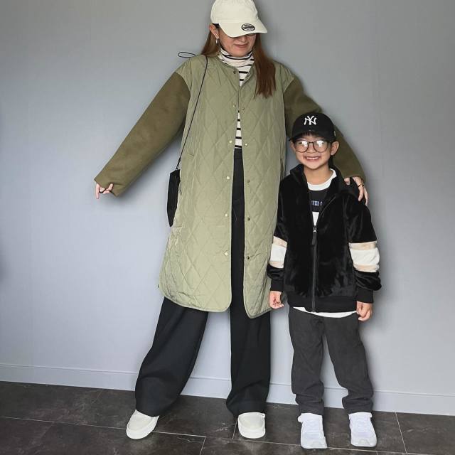 【子連れママのスニーカーコーデ7】スニーカー×デニムパンツ・カーゴパンツの冬コーデ
