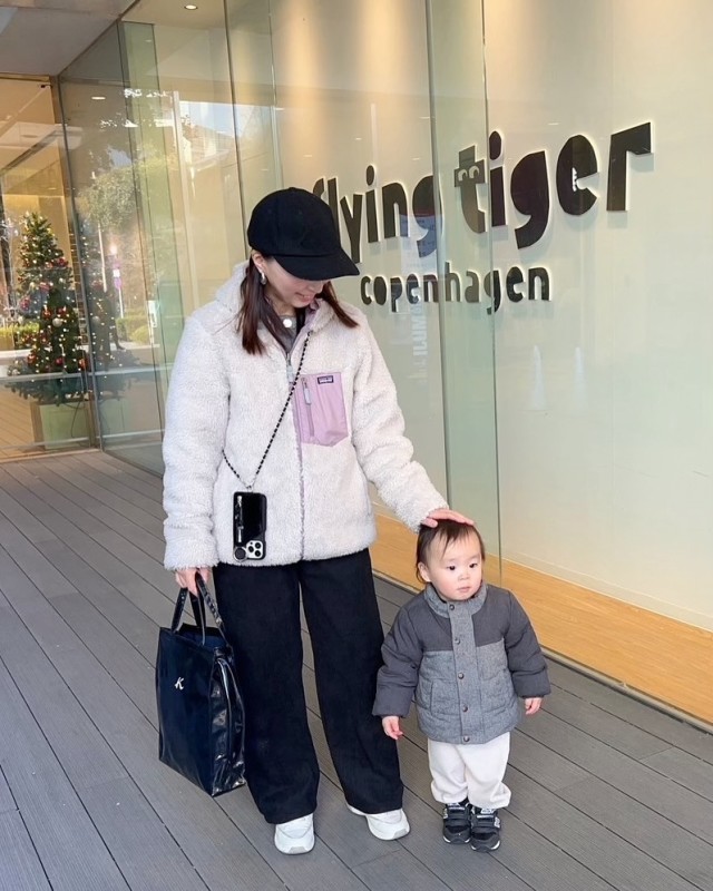【子連れママのスニーカーコーデ2】スニーカー×ボアアウターの冬コーデ