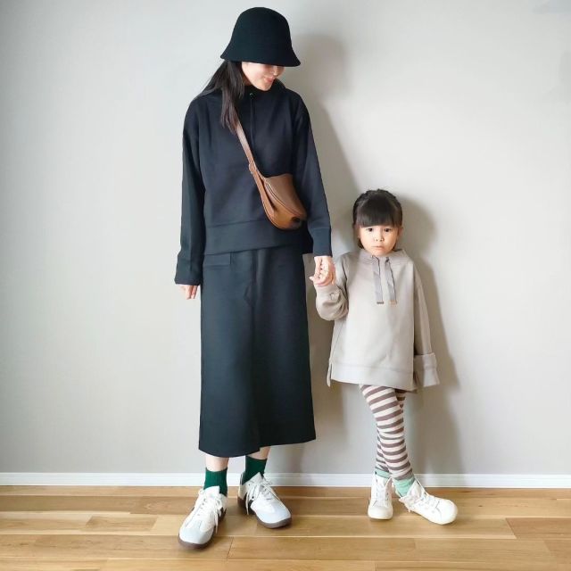 【子連れママのスニーカーコーデ6】スニーカー×ジャージパンツ・スウェットパンツの冬コーデ