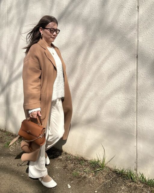 そこでイチ押しなのが「白のワイドパンツ」。茶系のアウターを羽織るだけで品よくまとまりますよ。