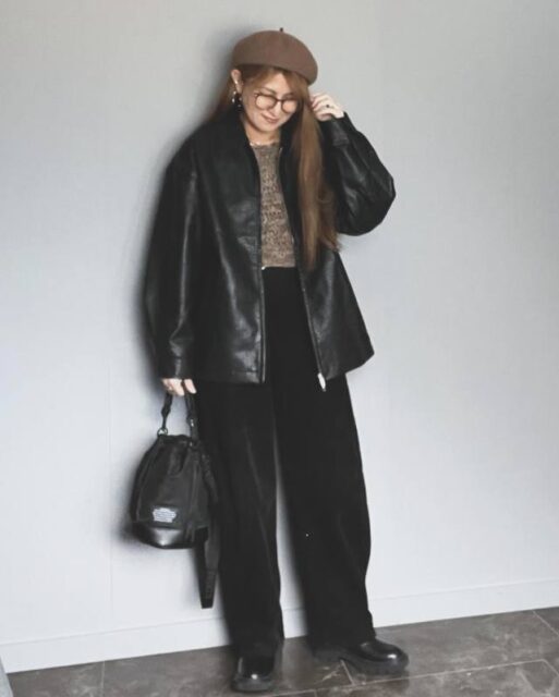 マットな質感のコーデュロイと程よくツヤのあるレザーは相性バツグン。レザーブルゾンを羽織るなど、コーデを異素材ミックスすることでスタイリングに奥行きが出て、あか抜けた雰囲気に。ちょっぴり辛口でモードなカジュアルに仕上げたい日は、ぜひこの組み合わせを参考にしてみてください。