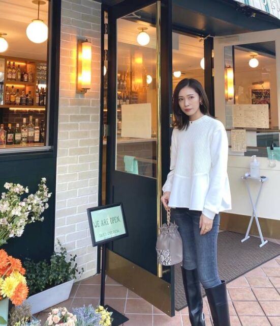 スナップで着用しているペプラムトップスのブランドは>>SONO(ソーノ)