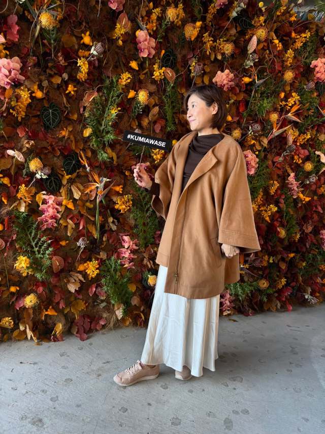 キャメルカラーのアウター合わせで上品なスタイリングに