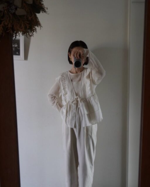 【春の全身白コーデ2】シアートップス×パンツでクリーンに
