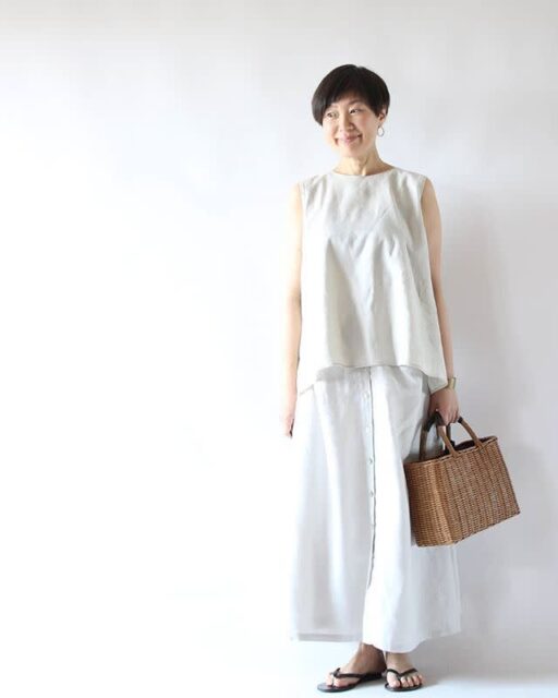 【夏の全身白コーデ2】リネンの服でナチュラルに