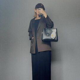 ジャケット×パンツのオールブラックコーデ