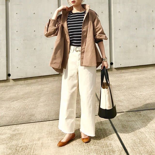 肌寒い日はロングコートが欠かせませんが、ダウンコートやチェスターコートから軽めのコートにチェンジすると2月のムードにマッチします。ボーダーニットに合うのはステンカラーコート・トレンチコート・ナイロンコート。気温調節しながら軽やかなコーデに決まります。