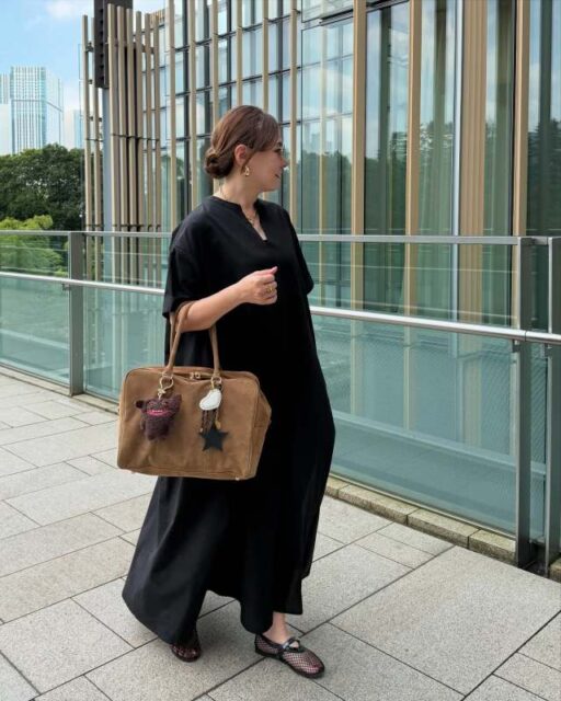 黒ワンピースコーデをハンサムな雰囲気に寄せられるのがテーラードジャケット。フェミニンなディテールが効いたワンピースも、テーラードジャケットをサッと羽織るだけで全体が引き締まり、程よくマニッシュな表情に。気負わないのにきちんと感も漂う、そんな大人が理想とするカジュアルコーデがテクニック不要で完成します。