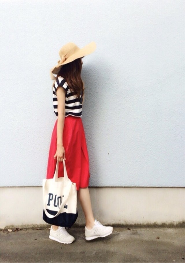 2015年はこんな色鮮やかなスカートも多く登場しました。今主流のロング丈よりも面積が小さい分、ちょっと派手に感じるカラーも取り入れやすかった印象です。ボーダーTシャツやハットを合わせれば、ヘルシーなカラーコーデが完成!