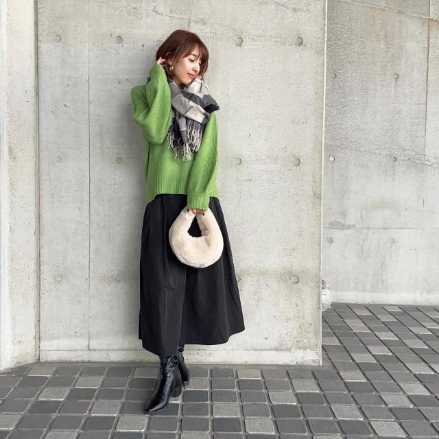 スナップで着用している緑ニットのブランドは>>THE SHOP TK(ザ ショップ ティーケー)